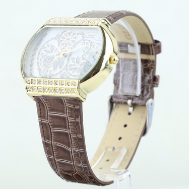 This watch has an oval case and interspersed with gluing stones, The most innovative design is the dial: gold line +white shinny powder, details and perfect craftsmanship are revealed everywhere. This watch will satisfy your picky mind.