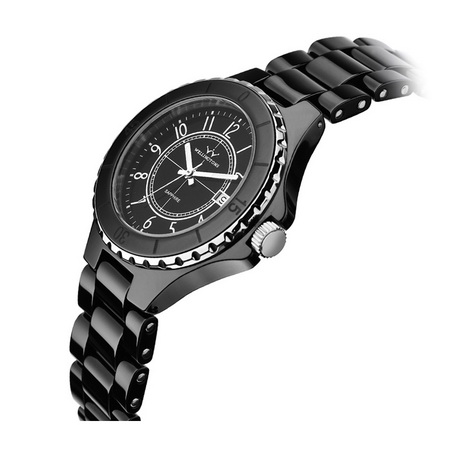 Compared with traditional materials, Ceramic is harder, Scratch-proof and anti-corrosion .This watch used shiny black ceramic case and band, the dial is made of blue shells, It can reflect the texture of the watch and highlights the elegance of women.