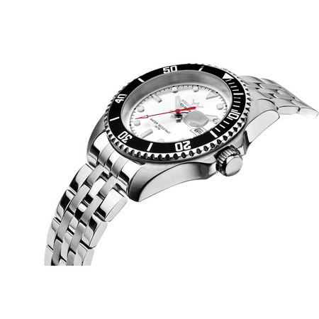 大錶殼尺寸,獨特的錶盤設計,錶盤是腕錶的特別部分。 由於色彩繽紛的錶盤可能會造成混亂的時間,秒針使用紅色的顏色,以指向時間更為準確。 錶殼圈口採用黑色調,使整個銀色手錶與眾不同。 不僅富有活動力而且穩重。