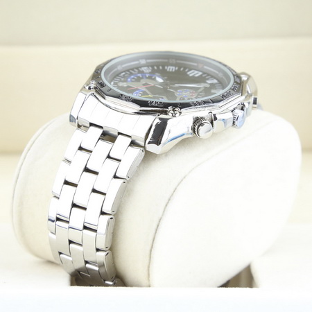 Bigger case size with unique dial design, the dial is the specialist part of the watch. Due to colorful dial may cause confusing time, second hand uses red color on the end to point the time even accurate. The ring uses black color makes the whole silver watch different. Not only sporty but also steady.